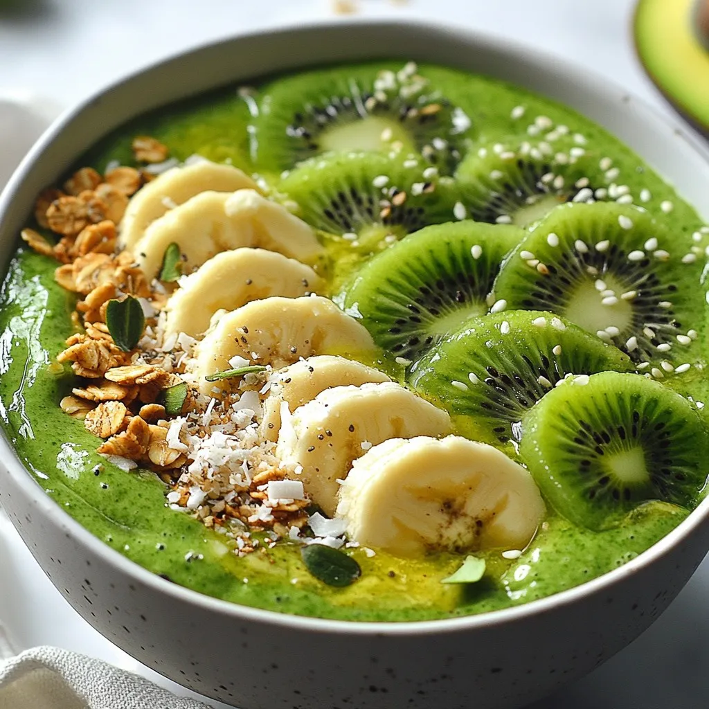 A beautiful bowl makes eating fun! Arrange colorful toppings like kiwi and granola on top. Start with kiwi slices first. Then, sprinkle coconut flakes and seeds for crunch. Bright colors make your bowl more appealing. Enjoy making your smoothie bowl not just tasty but pretty too!