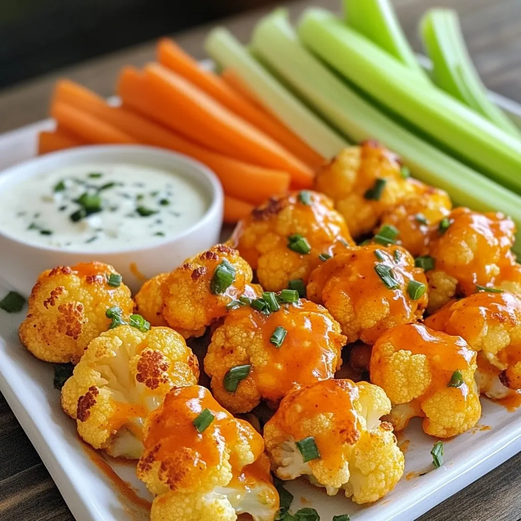 Buffalo cauliflower bites pair well with celery sticks and carrot sticks. They add a nice crunch and freshness. You can also serve them with blue cheese or ranch dressing for dipping. These options balance the heat and add flavor.