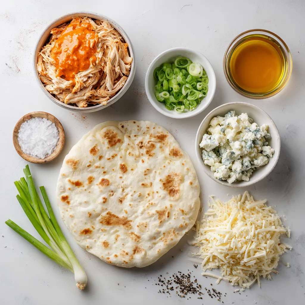 To make Buffalo Chicken Flatbread, gather these key ingredients: