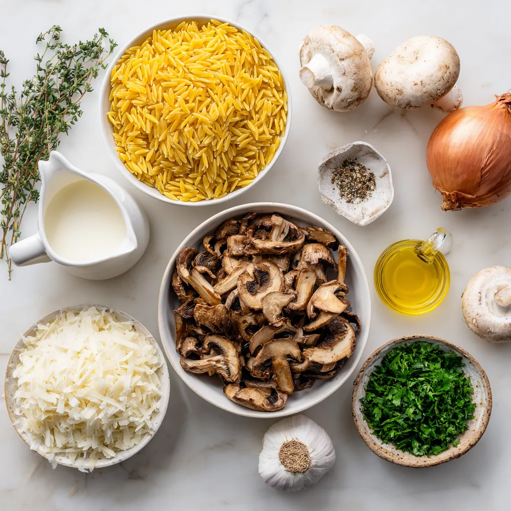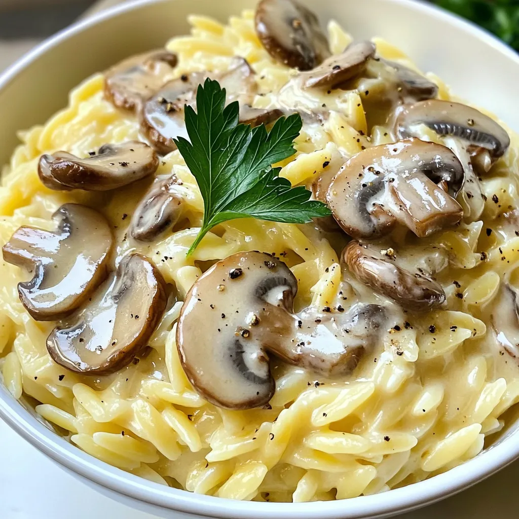 A delicious and creamy orzo pasta dish with mushrooms, perfect for a comforting meal.