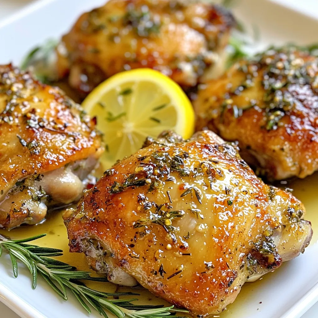 A flavorful dish featuring chicken thighs marinated in garlic and fresh herbs, roasted to perfection.