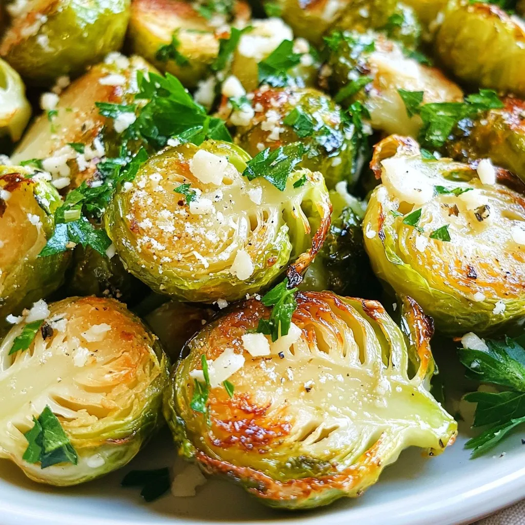A delicious side dish featuring Brussels sprouts roasted to perfection with garlic and Parmesan cheese.