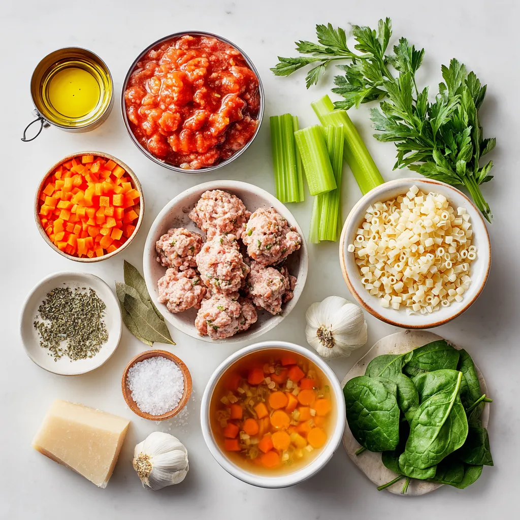 Canned tomatoes provide a tangy base. Chicken broth adds depth and warmth. Orzo pasta makes the soup hearty and filling. Dried herbs like oregano and basil bring in classic Italian flavors. Spinach adds color and health.