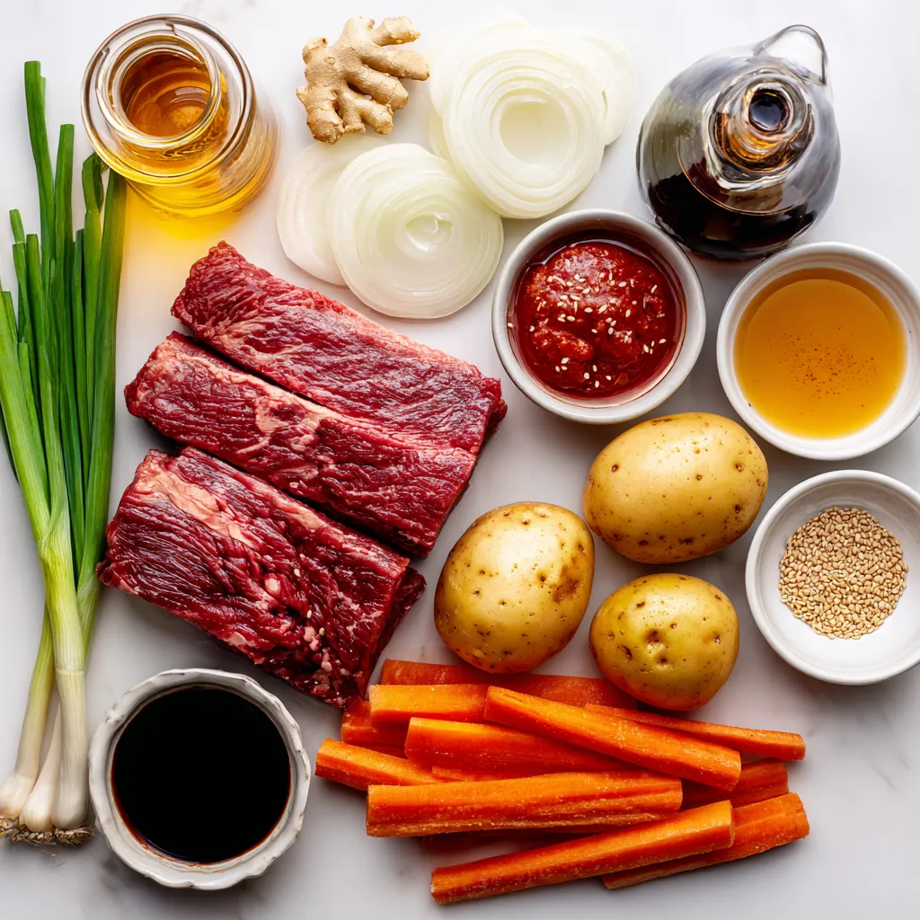 Yes, you can cook this recipe in a slow cooker. First, sear the chuck roast in a pan as the recipe says. Then, place it in the slow cooker. Add the onions, garlic, ginger, gochujang, soy sauce, honey, beef broth, carrots, and potatoes. Cook on low for 8 hours or on high for 4 hours. This makes the meat very tender and full of flavor.