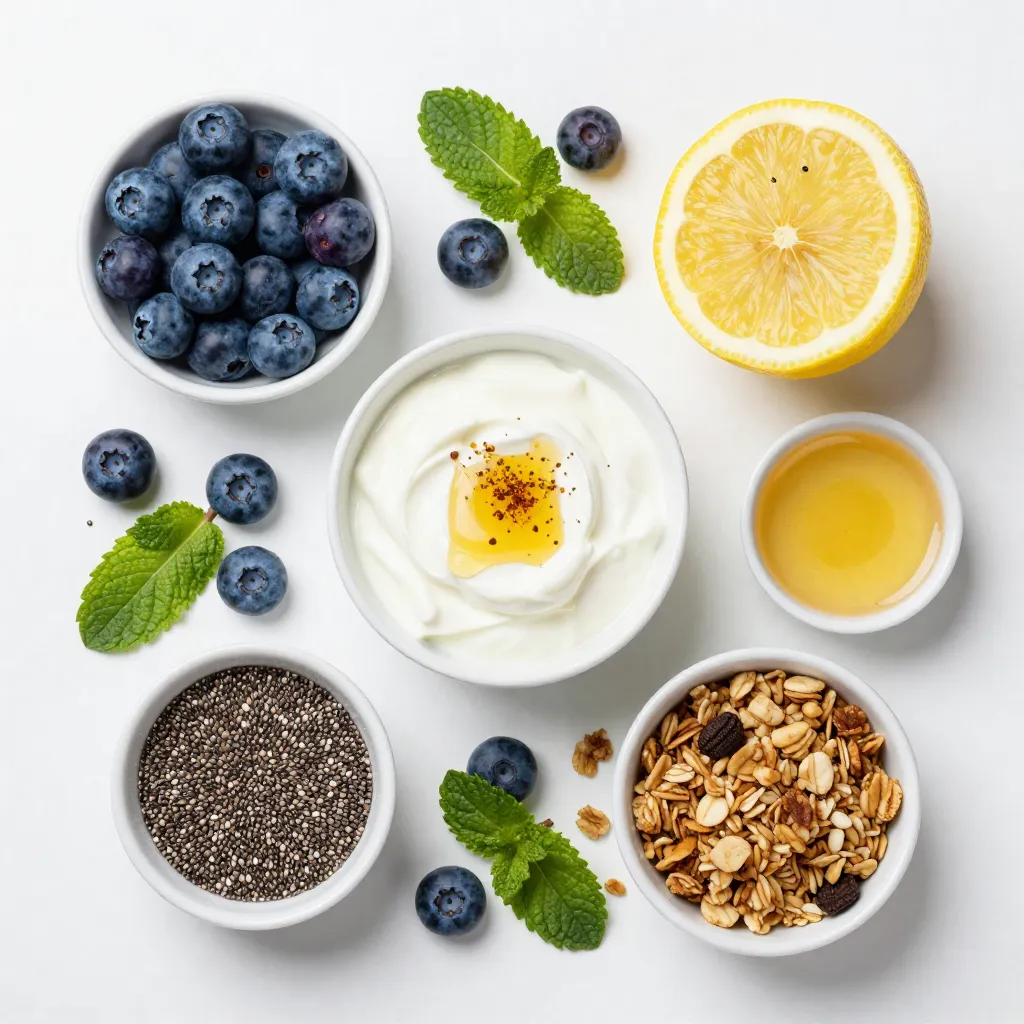 To make zesty lemon blueberry yogurt parfaits, gather these simple ingredients: