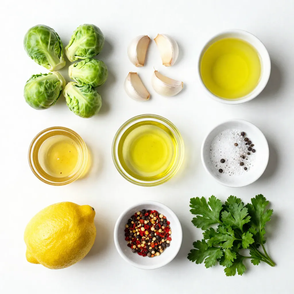 To make Lemon Garlic Roasted Brussels Sprouts, gather these simple ingredients: