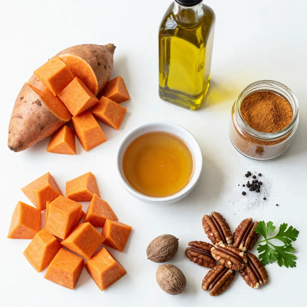 A delicious side dish featuring sweet potatoes roasted with maple syrup and spices.