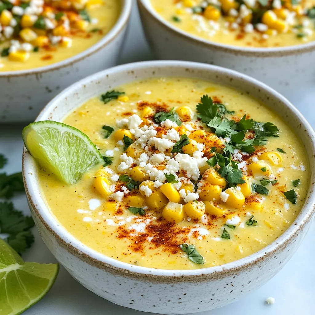A flavorful and creamy corn soup with a spicy kick, inspired by traditional Mexican street corn.