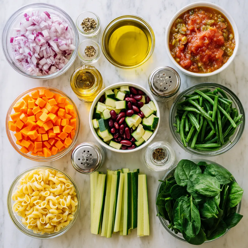 Each ingredient plays a role in creating a hearty and satisfying soup. The olive oil adds richness, and the garlic gives a nice aroma. Onions, carrots, and celery form a classic base, while zucchini and green beans add texture. Diced tomatoes and kidney beans boost flavor and nutrition. Vegetable broth ties everything together, making the soup warm and comforting.