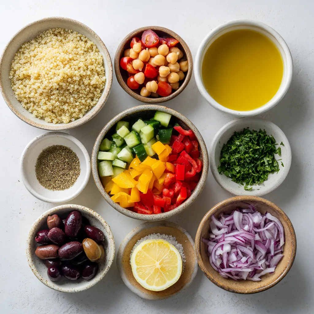 I love using these fresh ingredients to create a vibrant Mediterranean bowl. Each item brings a unique flavor and texture. Quinoa serves as a great base, adding protein and fiber. The vegetable broth gives it a rich taste.