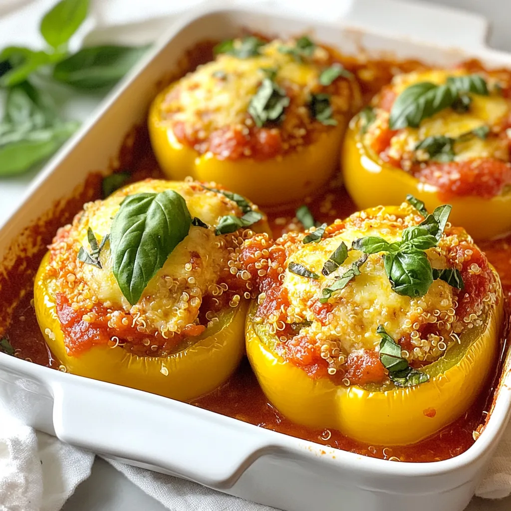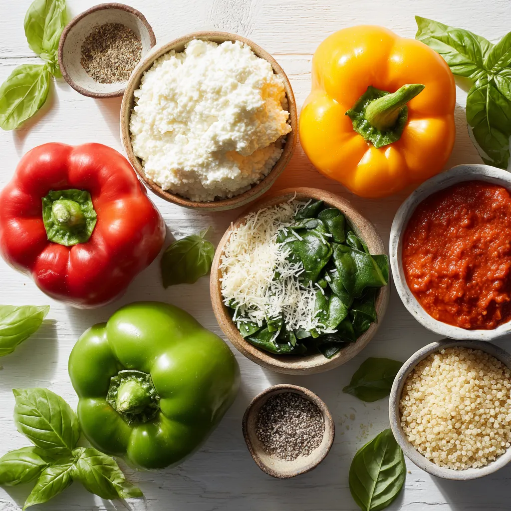 Each ingredient plays a key role in the flavor. The bell peppers add sweetness and crunch. Ricotta cheese brings a creamy texture that blends well with the other ingredients. Quinoa adds protein and a nice bite. Spinach gives a healthy touch, while Parmesan adds a savory depth. Garlic powder and Italian seasoning bring in aromatic flavors. Finally, marinara sauce ties everything together with its rich taste.