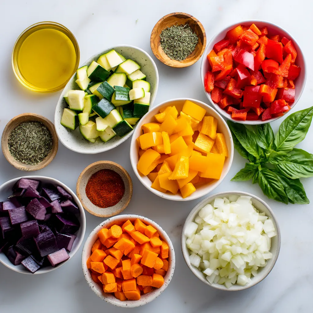 Start by washing all your fresh veggies. You want them clean and ready. Next, chop the red and yellow bell peppers into bite-sized pieces. Dice the zucchini and eggplant, and chop the carrot and onion. Mince the garlic.