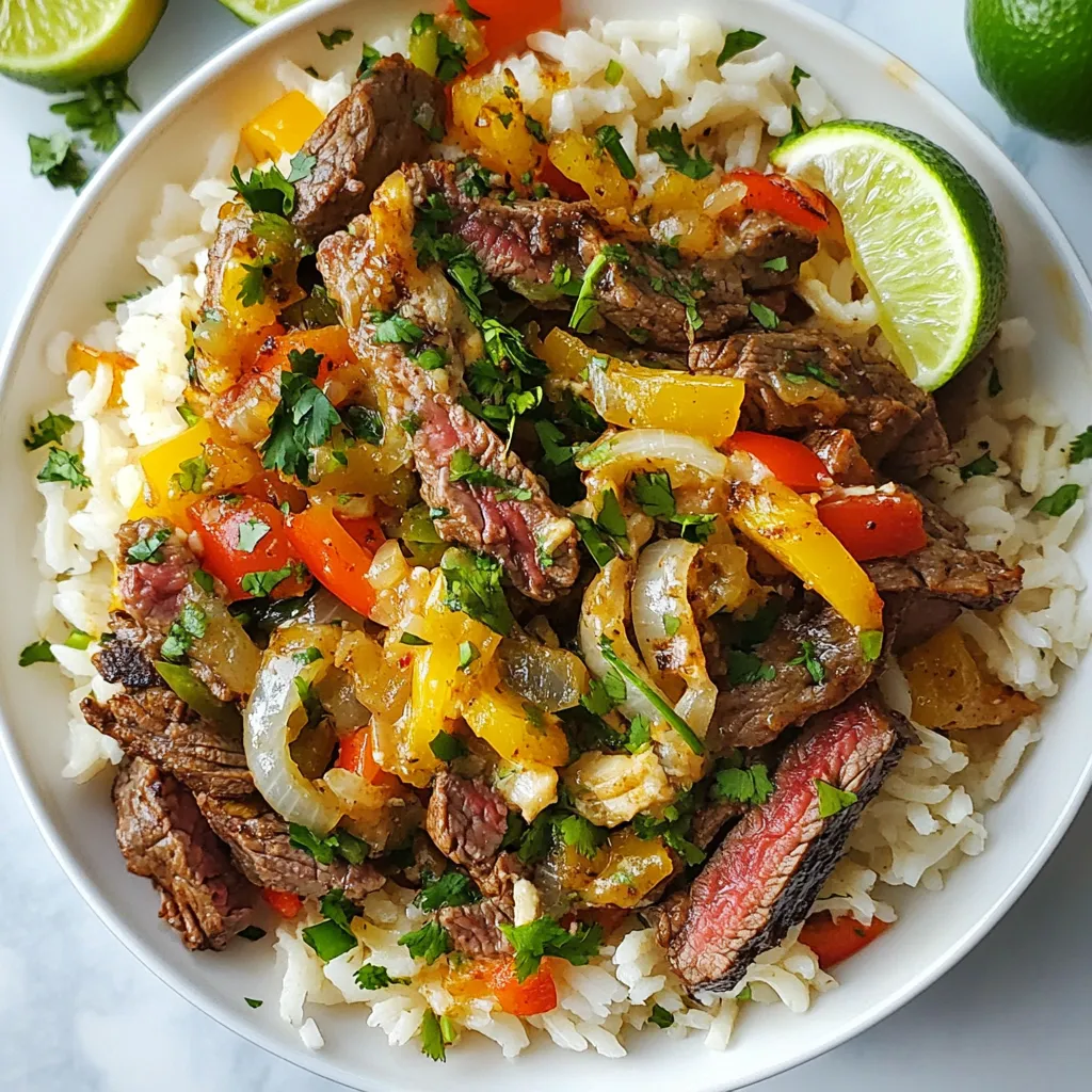 To make this dish, gather the following items: - 1 lb flank steak, cut into small strips - 1 cup uncooked jasmine rice - 2 cups beef broth - 1 cup queso blanco (or queso dip) - 1 medium onion, diced - 1 bell pepper, diced (any color) - 2 cloves garlic, minced - 1 tablespoon olive oil - 1 teaspoon smoked paprika - 1 teaspoon cumin - Salt and pepper to taste - Fresh cilantro, for garnish - Lime wedges, for serving These ingredients create a rich and flavorful meal. The flank steak gives a tender bite, while the queso adds a creamy touch. If you can’t find certain ingredients, here are some swaps: - Use chicken or turkey instead of flank steak. - Swap jasmine rice for basmati or brown rice. - Substitute vegetable broth for beef broth for a vegetarian option. - Try cheddar cheese if you can’t find queso blanco. - Use any bell pepper color you prefer. These changes can still keep the dish tasty. Each serving of this delicious skillet contains: - Calories: 520 - Protein: 36g - Carbohydrates: 45g - Fat: 22g - Fiber: 2g This meal is balanced, providing protein and carbs. It’s a great option for a hearty dinner. {{ingredient_image_1}} Start by cutting the flank steak into small strips. Use a sharp knife for clean cuts. Next, season the steak well. I like to use salt, pepper, smoked paprika, and cumin. These spices add great flavor. Heat a large skillet over medium-high heat. Add one tablespoon of olive oil. Once the oil is hot, add the seasoned steak strips. Sear them for about 3-4 minutes. Make sure they brown nicely on all sides. This step locks in the flavors. After searing, remove the steak from the skillet and set it aside. In the same skillet, add the diced onion, bell pepper, and minced garlic. These vegetables add color and taste. Sauté them for about 5 minutes. You want them to soften but not lose their crunch. Stir them often to avoid burning. This step brings out their natural sweetness. Now it’s time to add the rice. Pour in 1 cup of uncooked jasmine rice and mix it with the veggies. Stir for 1-2 minutes to toast the rice lightly. This enhances the rice's flavor. Next, pour in 2 cups of beef broth. Bring the mixture to a boil. Once boiling, reduce the heat to low. Cover the skillet and let it simmer for about 15 minutes. This cooks the rice and absorbs the broth. After the rice is done, add the steak back into the skillet. Pour in 1 cup of queso blanco. Stir gently until everything combines and heats through. Finally, garnish with fresh cilantro and serve with lime wedges. Enjoy your savory steak and queso rice skillet! To sear steak well, start with a hot skillet. Heat your skillet over medium-high heat for a few minutes. Add one tablespoon of olive oil and let it shimmer. Season the flank steak strips with salt, pepper, smoked paprika, and cumin. This adds great flavor. Place the steak in the skillet, but do not overcrowd. Sear for about 3-4 minutes. Flip the steak only once to get a nice brown crust. Once browned, remove it from the skillet and set it aside. To make fluffy rice, rinse the jasmine rice under cold water. This removes excess starch. In the skillet, add the rice to the sautéed vegetables and stir for 1-2 minutes. Toasting the rice enhances its flavor. Pour in the beef broth and bring it to a boil. Once boiling, reduce the heat to low and cover. Let it simmer for about 15 minutes. Avoid lifting the lid during cooking. This helps the rice absorb moisture and become fluffy. You can adjust the spice level to fit your taste. For a mild dish, use less smoked paprika. If you crave heat, add some chili powder or diced jalapeños. You can also use a hot queso dip instead of queso blanco. Always taste your dish as you cook. This way, you can balance the spices to your liking. Don’t be afraid to experiment! Pro Tips Choose the Right Cut: Flank steak is great for this dish, but you can also use skirt steak or sirloin for different flavors and textures. Toast the Rice: To enhance the flavor, make sure to toast the rice with the vegetables before adding the broth; this adds a nutty aroma. Monitor Liquid Levels: Keep an eye on the liquid while the rice cooks; if it absorbs too quickly, add a bit more broth or water as needed. Garnish with Freshness: Fresh cilantro and lime wedges really elevate the dish, adding brightness and balancing the richness of the queso. {{image_2}} You can make this dish more colorful and healthy by adding vegetables. Try some chopped zucchini, corn, or diced tomatoes. These add great flavor and nutrition. Just sauté them with the onion and bell pepper. You can also add spinach at the end. It wilts quickly and adds a nice touch. If you like heat, add some spice! You can use jalapeños or red pepper flakes. Stir them in with the garlic for a nice kick. If you want more flavor, try adding chipotle powder. It gives a smoky taste along with the heat. Adjust the spice to your taste to make it just right. Queso blanco is creamy and tasty, but you can switch it up. Try cheddar cheese for a sharper flavor. Pepper jack is great for a spicy twist. You can also mix cheeses for a unique taste. Just make sure to melt it well into the rice and steak for a creamy finish. To store your Steak and Queso Rice Skillet, let it cool down first. Then, place the leftovers in an airtight container. This will keep the dish fresh. Store it in the fridge for up to three days. When you are ready to enjoy your leftovers, heat them in a skillet. Add a splash of beef broth to keep it moist. Heat over medium heat for about five to seven minutes. Stir often to ensure even warming. You can also use a microwave. Place the dish in a microwave-safe bowl. Heat for two to three minutes, stirring halfway through. If you want to keep your dish longer, freezing is a great option. Use a freezer-safe container or a heavy-duty bag. Make sure to remove as much air as possible to avoid freezer burn. You can freeze the dish for up to three months. When you’re ready to eat, thaw it in the fri