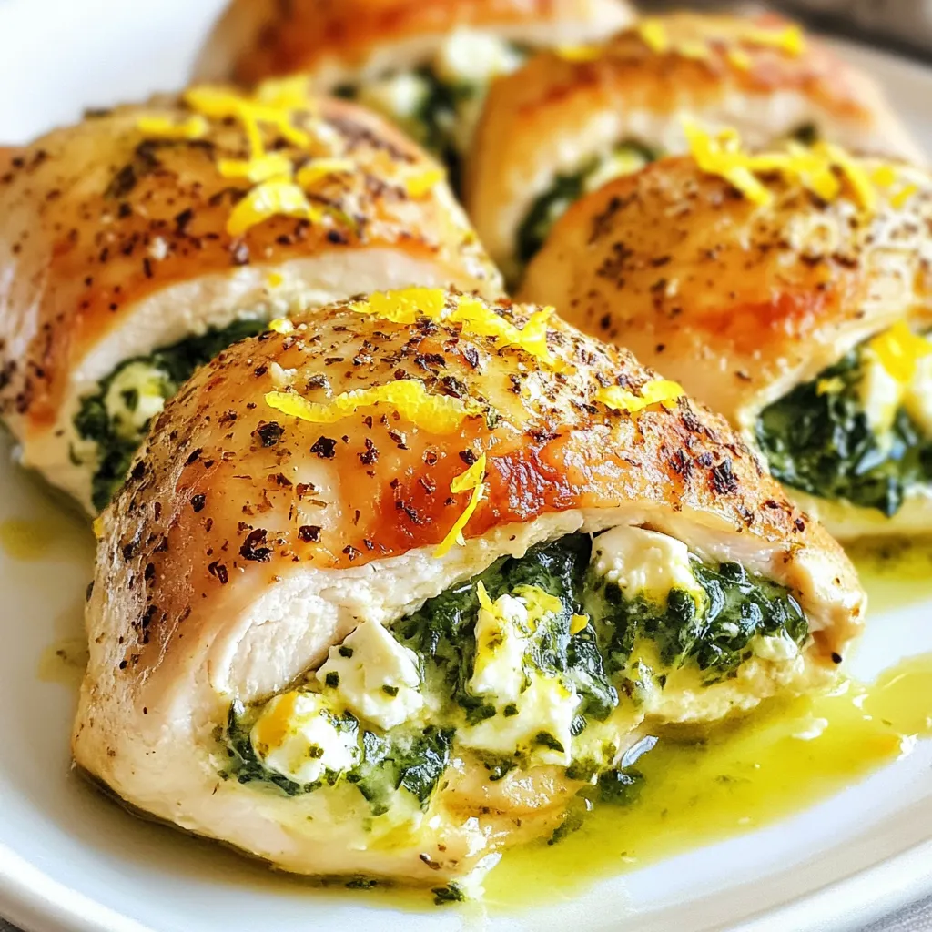 For a beautiful presentation, serve the stuffed chicken breasts on a bed of sautéed vegetables or next to roasted potatoes. A drizzle of extra lemon juice adds brightness. Garnish with fresh herbs for a pop of color. Enjoy your meal!