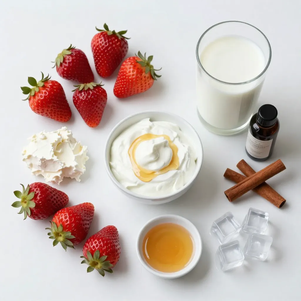 These ingredients come together to create a creamy and fruity drink. Fresh strawberries give the smoothie its bright flavor. Cream cheese adds richness, while Greek yogurt brings a tangy taste. Honey or maple syrup sweetens it just right. You can choose dairy or non-dairy milk based on your needs. Vanilla extract adds a warm note, and cinnamon can enhance the flavors if you like. Ice cubes make the smoothie thicker and colder.